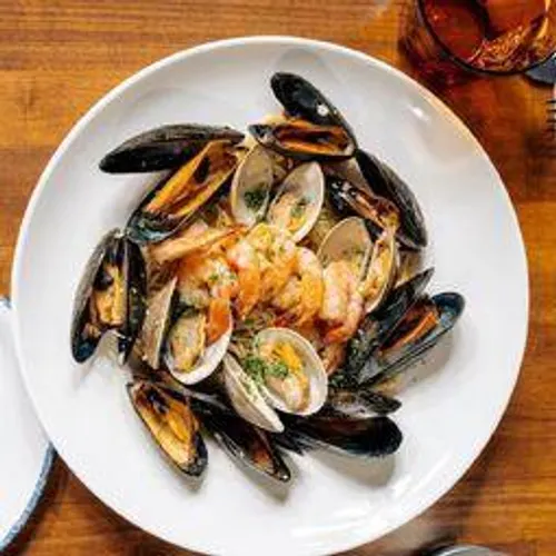 AED26à partager, méli-mélo de fruits de mer frits, crevettes, morue, calmars, mayo chipotle, sauce tartare